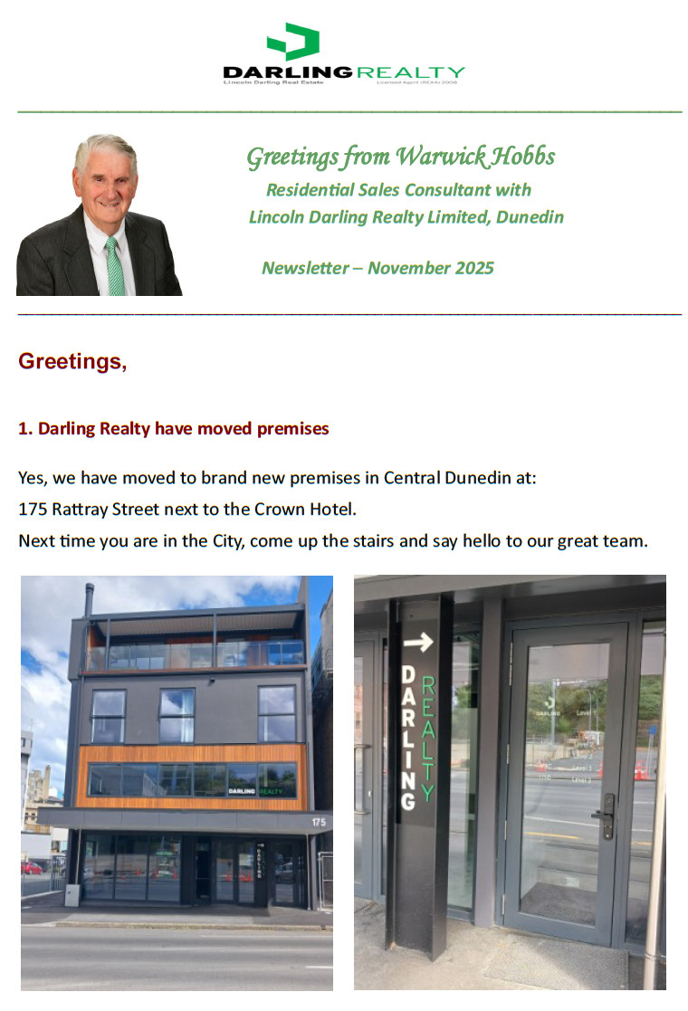 Welcome! Warwick Hobbs, Sales Consultant with Lincoln Darling Realty in Dunedin.